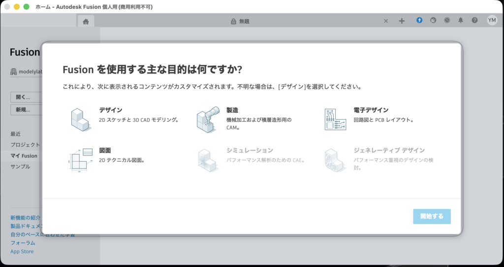 ブラウザでログイン後、Fusionが起動します。